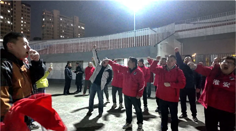 绿茵场上的角逐蓄势待发当淮安区队的球员 在训练场上刻苦备战时拉拉队员也聚在一起开